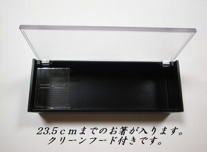 業務用箸箱 23.5cmまでの箸が入ります。 ふたは半透明で中に箸が入っているのが分かります。 左端にあります透明のカバーは、箸先が直接、手などに触れにくいためのカバーです。 取り外しできますので、衛生的です...