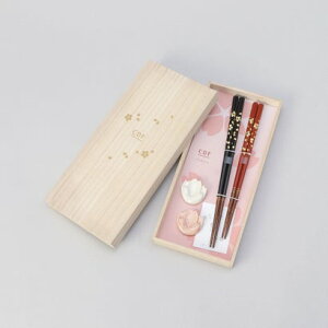 縁起の良いモチーフとして日本では昔から使われ春の訪れを教えてくれる「桜」をペアのお箸と箸置きのセットにしました。結婚祝い・長寿祝いなどのギフトはもちろん、海外のお客様にも人気です。箸先にはすべり止め加工が施されている