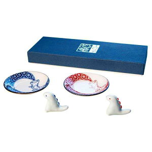 ガオーと恐竜が火を吐く祥瑞文様。まめ皿と箸置の普段使いのペアセットです。電子レンジ・食洗器に使用可能。 ●現品(まめ皿)約9φ×1.5cm・(箸置)約2×4.5×3.5cm ...
