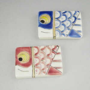 ギフト対応 京焼清水焼の窯元、紫泉窯の鯉のぼりの箸置きセット 五月晴れです。平たいタイル状の形に鯉のぼりを描きました。食卓に爽やかな風を運んでくれる箸置です。 ◆当店の京焼清水焼はご自分用だけでなく、...