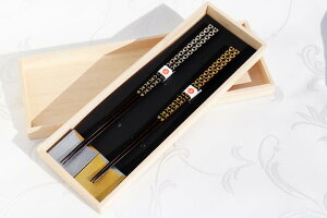 【箸ギフト】一双 百福 桐箱入 箸置付 夫婦箸 流彩 日本製 made in Japan 幸せな食卓を思い浮かべながら、揃いのお箸と雰囲気を合わせた箸置とのセットや、ご家族の笑顔あふれるだんらんをイメージしたセットなどバリエーション豊...