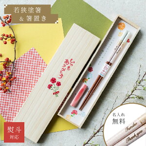 お世話になった方やご両親への喜寿祝いの贈り物に、名入れ桐箱入りの箸と箸置きセットはいかがでしょうか。 美しい漆の上質なお箸と鯛の箸置きは、喜寿祝いに喜ばれる逸品です。 木箱の表面にお祝いする方のお名前を入れることで...