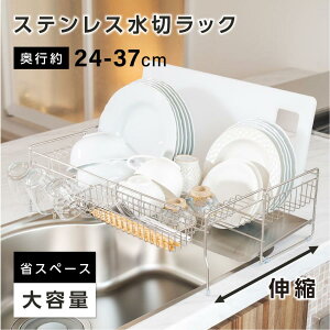 【伸縮式デザインでシンクにぴったりフィット】幅約57cm、奥行きは24?37cmまで自由に伸縮でき、洗い物の量やシンクのサイズに合わせて調整可能。必要な時だけ広げて、使わない時はコンパクトに収納できます。狭いキッチンでも空間を有効活用...