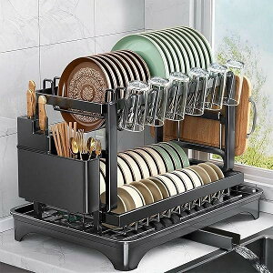 ラックキッチン食器乾燥ラック包丁スタンド箸置きまな板立取り付け簡単台所用品ホルダキッチン収納皿立て組黒二段メタルフレーム水切りカゴ大容量省スペース組み立て簡単縦置き食器乾燥錆びない,日本語取扱説明書付2段式,...