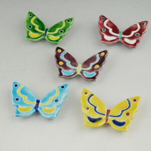 【商品名】 バタフライ箸置き5P 3.7×3cm 焼き物のまち・愛知県瀬戸市の職人による丁寧な手吹き彩色の蝶の箸置き C6106597 [ C6106597 ]