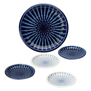 セラミックブルー パーティープレート家庭用食洗機使用可。メーカー品番 : CMB-3053AWセット内容 : 大皿(径25×3cm)×1、取皿(径14×2cm)×4材質 : 磁器本体重量 : 約1.7kg生産国 : 日本※この商品は電...