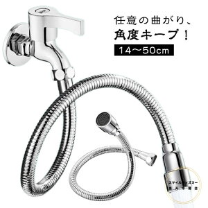 角度が自在の蛇口ホース長14cm/16cm/20cm/30cm/40cm/50cmホースを自由に曲げて角度をキープできる蛇口ホース!工事不要で取り付け簡単!泡沫タイプのシャワー口で水が飛び跳ねにくい。節水効果あり。横水栓・万能ホーム水...