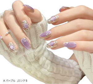 ルチップ 貼るだけ 簡単 ジェルネイル セルフネイル 付け爪 マグネット ミラーブランドHerbeluemily(ハベルミリィ)カラーA パープルサイズ等ロング S貼るだけで簡単に装着できるネイ...