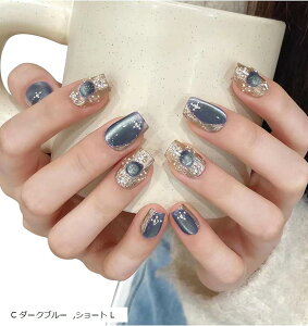 チップ 貼るだけ 簡単 ジェルネイル セルフネイル 付け爪 マグネット ミラーブランドHerbeluemily(ハベルミリィ)カラーC ダークブルーサイズ等ショート L貼るだけで簡単に装着でき...