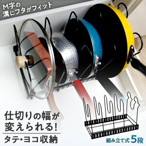 かさばるフライパン、鍋、蓋、耐熱皿、まな板、食器、調理器具などが収納できるスタンドです。タテ置き・ヨコ置きどちらでも収納可能で、仕切りの幅や段数も調整可能です。5 段組み立て式。 サイズ 約26×22...