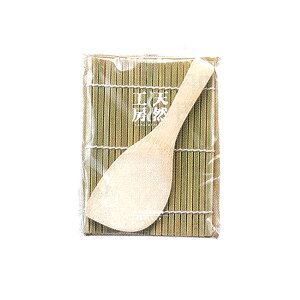 自然素材!皮付竹の巻すです。海苔巻きなどの巻き寿司作をワイワイ作れる木ベラ付。巻すは親指と人差し指で持ち、他の指で具を押さえて巻きます。最後に巻き簾の上から軽く締めると形よく仕上がります。※天然素材を使用した製品は多