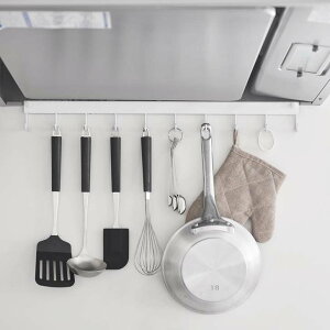 ●レンジフードに引っ掛けて調節ネジで固定! ●キッチンツールの収納に便利な10連フック。 ●キッチン小物やフライパンも収納可能。 ●スリム・ファルコン・ブーツ・フラットタイプの形状に取り付け可能です。 ■商品サイズ(約):幅55×奥