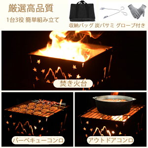アウトドア キャンプ 焚き火台 ステンレス鋼製 特殊耐熱 メッシュ 収納袋付き 折り畳み式 超軽量 組み立て簡単 耐久性が良い 頑丈な素材 グランピング ベランダ テラス ガーデンバーベキュー BBQ 庭 おうちキャンプ...