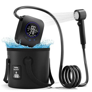 ポータブルシャワー アウトドア 携帯シャワー 20L折りたたみ式バケツ付き 直射ヘッド付き USB充電式 簡易シャワー デジタル画面 水流量調節可 シャワー ポンプ 海水浴 サーフィン 旅行 ポータブルシャワー ...