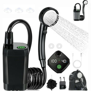 ポータブルシャワー アウトドア 携帯シャワー 20L折りたたみ式バケツ付き 直射ヘッド付き USB充電式 簡易シャワー デジタル画面 水流量調節可 シャワー ポンプ 海水浴 サーフィン 旅行 ポータブルシャワー ...