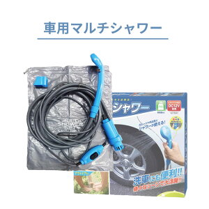 車用マルチシャワー 水量、無段階調節ができ、付属のフックや吸盤で自在に設置可能!! 海水浴アウトドア、洗車にも使える便利な商品です。 ■商品詳細■ ・セット内容:シャワーヘッド、ホースセット、ゴムパッキン、 フック、吸盤、