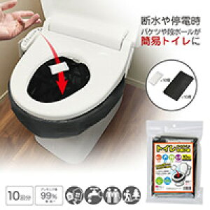 災害や断水などの非常時に活躍するトイレの凝固剤。非常用トイレの凝固剤が10個入り。※袋はついてないため、市販のゴミ袋をご用意ください。凝固剤は開封しない限り使用可能。安心の日本製。断水時の洋式便器に市販のゴミ袋(45L)を