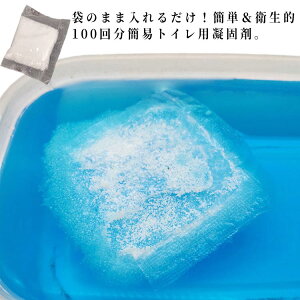 袋のまま入れるだけ!簡単&衛生的100回分簡易トイレ用凝固剤。災害時、断水時、レジャー、アウトドア、ドライブ、介護など・・・水を使わない非常用トイレです。使い方は簡単!洋式トイレ、携帯トイレなどにトイレ袋をセットし排泄後