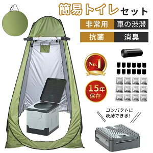 商品情報【商品特徴】【製品サイズ】折りたたみ トイレ:33*29*30CMプライバシーテント:120*120*190CM【セット内容】・トイレ本体(蓋つき)1個・収納袋 1個・処理袋 1巻・凝固剤 12個・テント 1個・固定ロープ 4...