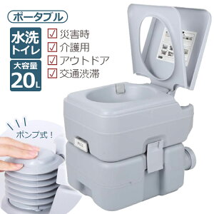 ご高齢者の方の介護用やキャンプやレジャー、緊急時の非常用などに、とても重宝する簡易ポータブル水洗トイレです。 便座の最大荷重は200kgです。 水洗方式は手動のポンプ式です。 20Lタイプなので座面が高くなり用を快適に足す事が出来ます...