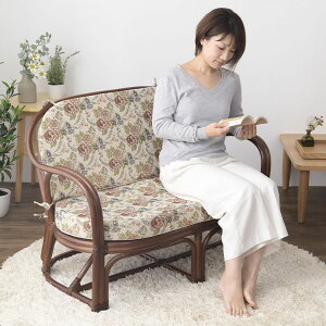 素材/本体:天然籐、側生地:綿50%・ポリエステル50%、クッション材:ウレタンフォーム ●備考/同柄クッション2個付き、引き出し2杯付き、組立不要完成品 ※手作業で生産される籐製品は表記寸法...