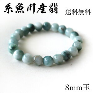 ビーズサイズ : 約8mm ブレスレットサイズ : 内径 約14cm 石部分 : 翡翠 原産地 : 新潟県糸魚川 使用素材 : シリコンゴム ※実店舗を兼ねているため、在庫「有」の表示でも、在庫が無い場合もございます...