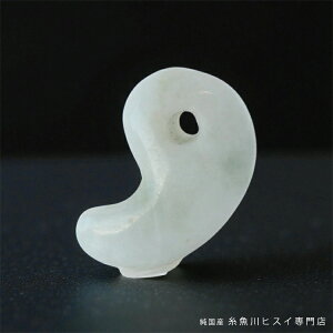 糸魚川翡翠/ジェダイト 昭和31年に国の天然記念物に指定され、現在でも新たに採取することができない希少な国産天然石『糸魚川翡翠』の勾玉です。 勾玉は『まがたま』と読み、日本独自に発達した不思議な形の玉(ぎょく)で...
