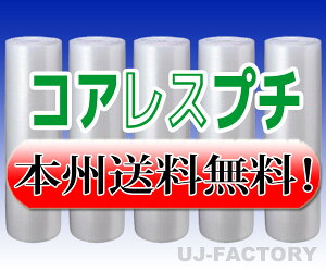 【 商品説明 】 ★コアレスプチ/省資源タイプ♪ ★ゴミが出ない! 「コアレスプチ」は従来品の紙管を無くすことで、廃棄の手間を無くし、ゴミが出ません。省スペース・省資源に貢献します! ★プチプチは従来品よりも約14%の軽量化(