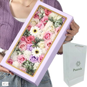 24wl商品名ソープフラワー フラワーボックス 誕生日 プレゼント 母の日 退職 敬老の日 造花 紙袋付きブランドPuanelaカラーピンクサイズ等大「フラワーデザイナー監修」(商標登録番号:6641739)...