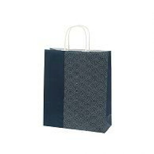 サイズが幅260×マチ160×高260mmで紺が基調の家紋モチーフの手提げ紙袋。コンパクトでマチ幅が広めで箱ものにおすすめです。和菓子や和雑貨などのギフト用に。・日本の家紋モチーフの模様とシックな紺の色味・サイズは幅260×マチ160...