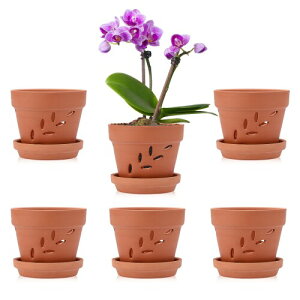 BSTKEY 6個セット 素焼き鉢 植木鉢 陶器鉢 観葉植物鉢 オシャレ 葉の形の穴付き 受け皿付き ガーデン用品 4インチ レッド 10CM 排水性と通気性が良い:植木鉢は排水性が高く通気性の良い赤土で作られており...