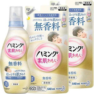 【まとめ買い】ハミング素肌おもい 無香料 本体 600ml+つめかえ用 540ml×2個本体詰め替え