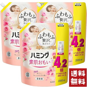 花王 ハミング 素肌おもい 柔軟剤 フレッシュローズ つめかえ用 メガサイズ 2000ml*3