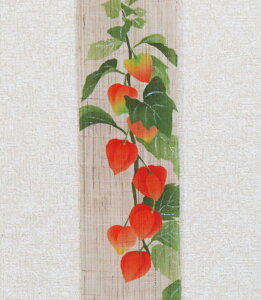 和のこだわり 四季折々の草花や 日本の風景を描いた細長タペストリー 季節を感じながら 何本か組み合わせて飾ってみたり お気に入りの一本を 季節ごとに選んで楽しんだり。 提灯に火を灯したように 赤く色付いたほおずきを 丁寧に描いた
