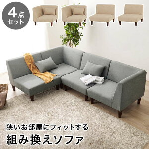 ●狭いお部屋にフィットする組み換えソファ お買い得な4点セット。●1Pソファ×2個、コーナーソファ×2個。●組み合わせが自由で、自分好みの理想の配置に設置することができます。
