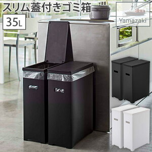 【各色1個セット】 スリム蓋付きゴミ箱 35L 庫内分別 ホワイト・ブラック 組み立て式 タワー tower 5332 山崎実業 YAMAZAKIシンプルお洒落な軽量ごみ箱