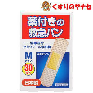 薬付き救急バン この救急バンは消毒成分アクリノール水和物を含有し傷口を消毒・保護する救急絆創膏です。 アクリノール水和物付きパッド 傷口をいためにくい特殊ネット 効能・効果 すり傷、切り傷、さし傷、かき傷...