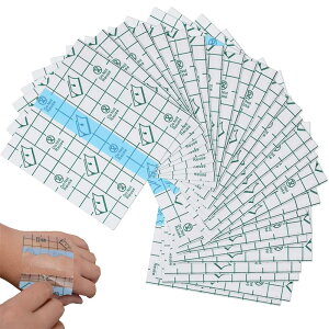 【セット内容・素材】防水フィルム50枚、色は透明で、幅広い用途に使用できるため。ポリウレタン(PU)材料から出来上がったフィルム。【利点】包帯シールのサイズは10 * 10cmで、厚さはわずか0.1mmです、ほとんどのニーズに合わせてサイズ