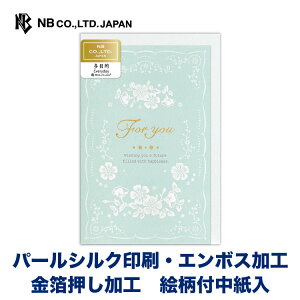柔らかく輝くミントカラーの花々をあしらった上品な多目的カードです。 大人の方向けの可愛いらしいデザインです。 通年通してお使いいただけるカードを