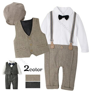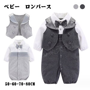 ベビー ロンパース 長袖 タキシード風 サスペンダー 連体服 百日祝い/七五三/結婚式/お出かけ/お食い初め