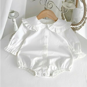 名称:ロンパース ・特徴:肌触りが良く清潔感のあるシャツ風のロンパース♪残暑や少し肌寒い季節にもオススメです。 ・カラー:ホワイト・ブルー ・素材:コットン・ポリエステル ・サイズ:66/73/80/90/100...