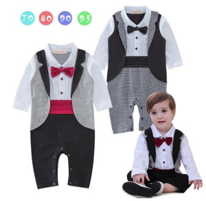 商品説明 color="000000">商品名蝶ネクタイ付きフォーマルロンパース。 重ね着風フォーマルロンパース 結婚式やお呼ばれ、お誕生日などベビーのお祝い、 そんな時はスーツ重ね着風カバーオールでおめかし...