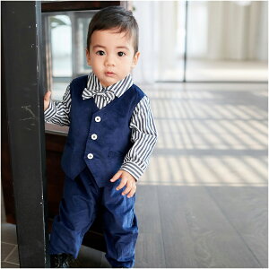 商品説明 商品紹介 ベスト・パンツ・シャツに蝶ネクタイがセットになって、 着せるだけできちんとしたフォーマルセットです。 70~130cmサイズまでの幅広いサイズ展開で、 兄弟でおそろいコーデも楽しめるでしょう。 シャツを変えれば、様
