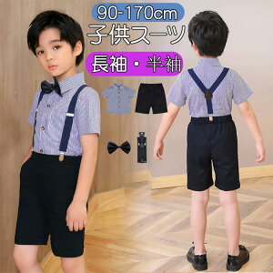 子供服 男の子 フォーマル スーツ 紳士服 4点セット 半袖シャツ 長袖シャツ ハーフパンツ 長ズボン 蝶結び ストライプ付き 春用 夏用 秋用 結婚式 ピアノ 発表会 誕生日 入園式 入学式 演出服...
