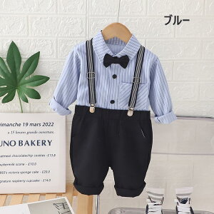 ベビー服 フォーマル 男の子 ストライプデザインと蝶ネクタイがきちんと感を演出♪ 大人顔負けシルエットが 子供服 紳士服 洋服 子供服 百日祝い 誕生日 80/90/100/110/120