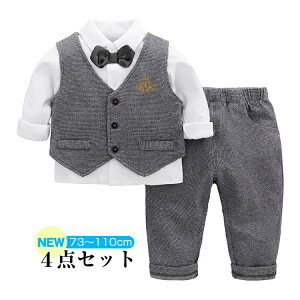 気負いなくご着用頂けます!! ★男の子 ベビー フォーマル スーツ 子供服 ベビー服 紳士風 フォーマル 赤ちゃん 子供 男の子 キッズ 上下セット 結婚式やお呼ばれ、お誕生日会やお食い初めなどベビ...