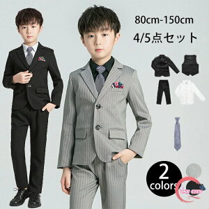 子供 スーツ 男の子 4点セット黒 縦縞 フォーマル キッズ 入学式 発表会 卒業式 七五三 タキシード 子ども こども 90 100 110 120 130 140 150 商品名 子供スーツ上下セット...