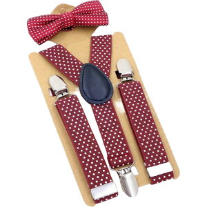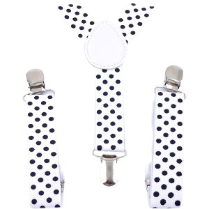 水玉模様の可愛いデザイン♪ 子供用のY型サスペンダー&蝶ネクタイのセットです。 フォーマルシーンはもちろん、お出かけ・お呼ばれなどでも☆ 1つあったら便利なアイテムですね◎ ※蝶ネクタイはオマケです。カラーやサイズなどは選べ