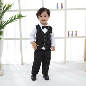 商品詳細:■素材: コットン・ポリエステル■4点セット:ベスト×1、ズボン×1、シャツ×1、蝶ネクタイ×1■商品特徴:○ちょっと大人っぽいデザインが男の子らしさをアップします!○入園式、誕生日、パーティー、七五三、発表会、記念撮
