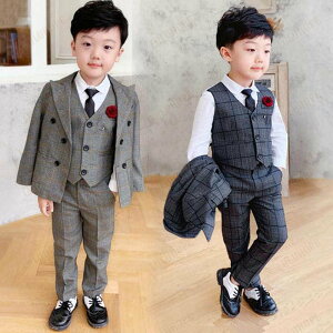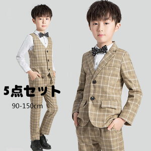 キッズスーツ チェック柄スーツ 子どもスーツ タキシードスーツ フォーマル おしゃれ スーツ5点セット 子供服 司会者 入学式 発表会 結婚式 演出会 ピアノ 成人式 誕生日 記念日 入園式 発表会 入